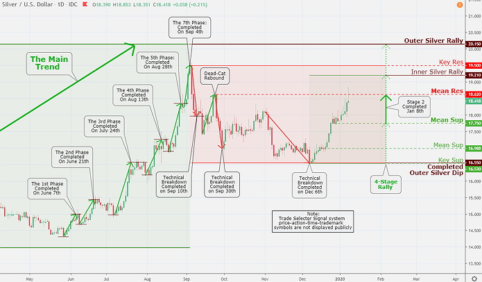 Silver Technical Analysis and Outlook: Here is a look at Silver chart knocking on Inner Silver Rally $19.21 door - It is presently retreating from powerful Mean Res $18.62, and I would fancy that there is nothing can stop it in the intermediate time-frame to advance to Outer Silver Rally $20.15 flagged initially on August 28, 2019.